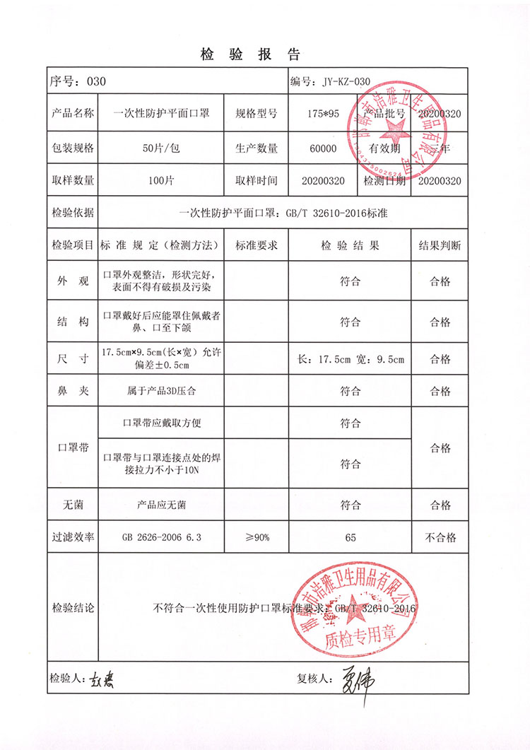 邯鄲市潔雅衛生用品有限公司生產的品牌為JYM93D立體口罩一次性平面口罩,為非醫用防護口罩;KN95 防護口罩非醫用。生產日期為:2020年3月10日至2020年4月30日,在此期間生產的部分產品有質量問題,在疫情期間因供應商供應的熔噴布質量部分出現不達標,造成產品不合格。望各省、市市場監管部門如發現我們公司產品進行告知,各銷售商如還有我公司產品,望您告知我公司業務人員,我公司將安排技術人員上門檢驗,批次產品是否合格,如發現不合格產品,我公司進行召回,不合格產品按進貨價給予退回。望各省市市場監管部門給予幫助召回召回日期為2020年8月25號至2020年9月25號
